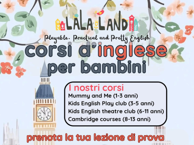 A LaLa Land proponiamo corsi d’inglese divertenti e coinvolgenti per bambini, grazie al nostro metodo esclusivo: THE KIDS ENGLISH THEATRE METHOD©️, che offre Practical, Playable e Pretty English.