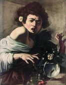 Anzi, era proprio spiantato poverino, soprattutto nei suoi primi anni a Roma, quando dormiva fuori, sotto le panche dei bottegai; dipingeva tre teste al giorno e mangiava insalata! Sono più o meno gli anni della Canestra di Frutta, del Bacco, o ancora del famosissimo Ragazzo morso dal Ramarro (1595-96, Firenze, Fondazione Longhi).